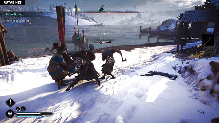 Поговорите, а затем идите с кольцом, пока не начнется другая кат-сцена. Эйвор будет делать то, что сказал его отец, и запустится еще одна кат-сцена. Ваша деревня находится под атакой. Когда вы контролируете Эйвора, выходите через дверь с воткнутым в нее топором, и начнется еще одна кат-сцена, когда Роста придет вам на помощь. Мы не будем спойлерить то, что будет дальше, но обратите внимание, потому что это важно.