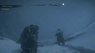 Когда вы прибудете, поставьте лодку в док и используйте своего ворона. Вы увидите бирюзовый кружок вокруг местонахождения отца Сигурда. Он в пивной, отключился на столе с выпивкой. Заходите внутрь и кат-сцена начнется. Выберите любой вариант диалога, который, по вашему мнению, подходит лучше всего - строки, следующие за ними, разные, но результат тот же. Следуйте за Сигурдом обратно и начнется еще одна кат-сцена. Пора отвести Сигурда в Хордафюльке.