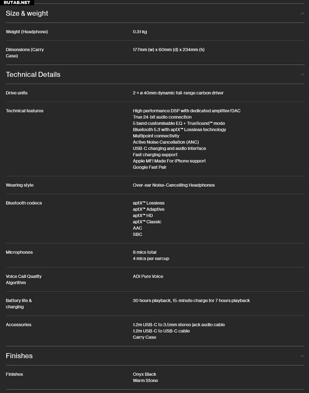 Основой звука стали 40-миллиметровые динамики с угловой установкой для улучшения стереопанорамы. Модель поддерживает высококачественные кодеки aptX Adaptive и aptX Lossless для передачи звука без потерь, а также воспроизведение по USB-C и через аналоговый вход.