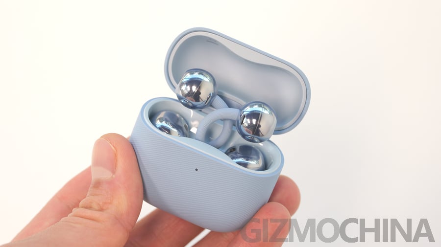 Кейс для зарядки стал меньше за счёт новой компоновки: наушники расположены внутри крест-накрест. Несмотря на это, их удобно доставать. Каждый наушник весит всего 5,1 грамма, что на 0,5 г меньше, чем у прошлого поколения. Корпус имеет кожаную текстуру и доступен в синем, белом и чёрном цветах.