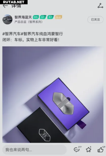 Продуктовый директор линейки Zhijie в приложении HarmonyOS Smart Mobility опубликовал изображение реального логотипа автомобильного бренда, назвав Zhijie «чистокровным представителем экосистемы HarmonyOS Smart Mobility» и отметив, что логотип отлично смотрится на автомобилях.