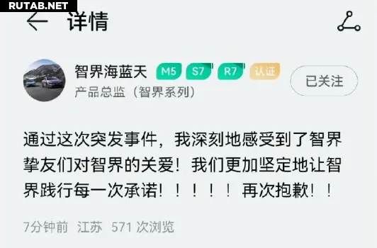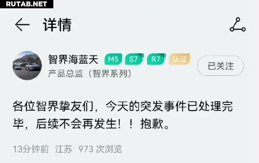 Директор по продукту Zhiji, известный под ником «Хай Ланьтянь», принес извинения в чате автовладельцев, заявив, что трансляция была прекращена. В своих публикациях он также пообещал, что подобные ситуации больше не повторятся.