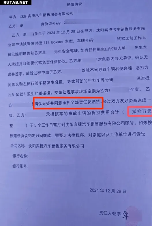 В китайском Шэньяне произошёл конфликт между клиентом и автосалоном после аварии во время тест-драйва Porsche. Местный житель по фамилии Шань обратился в службу поддержки «Автомобильная горячая линия 365» с жалобой на действия дилера.