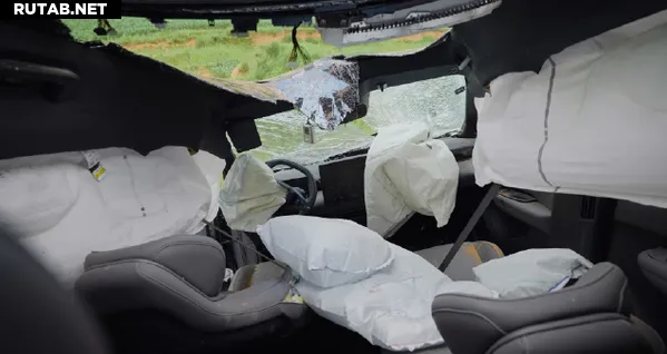 Несмотря на экстремальные условия, после удара аккумуляторная батарея мгновенно отключилась без возгорания или дыма. Салон остался неповреждённым, подушки безопасности сработали штатно, а двери сохранили возможность открытия.