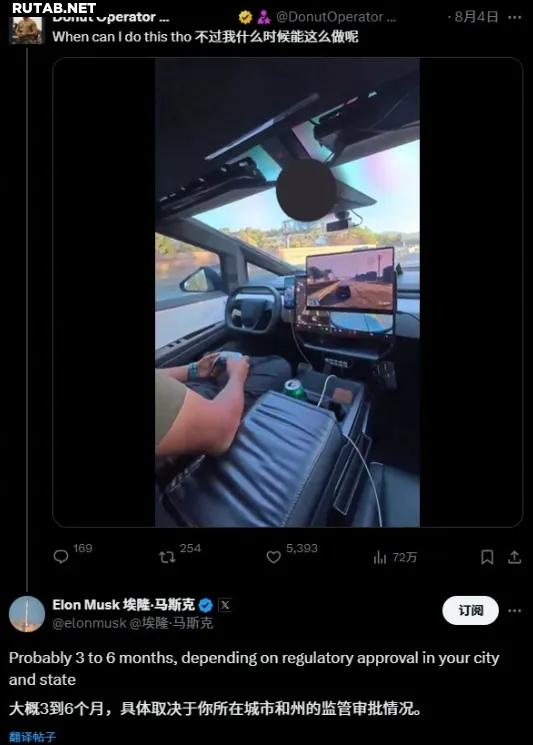 Недавно в сети появилось видео, где владелец Cybertruck играл в Grand Theft Auto во время поездки с активированным FSD. Маск прокомментировал это: «Возможность играть в видеоигры за рулём появится примерно через 3–6 месяцев, в зависимости от одобрения местных регуляторов».