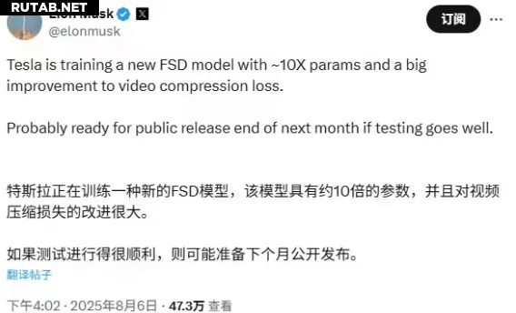 Илон Маск анонсировал новую версию FSD с увеличенным в 10 раз количеством параметров