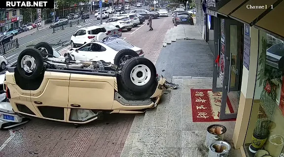 После столкновения с SU7 Tank 400 перевернулся, повредив еще два припаркованных автомобиля, и в итоге остановился в положении «вверх колесами». К счастью, в происшествии не пострадали пешеходы.
