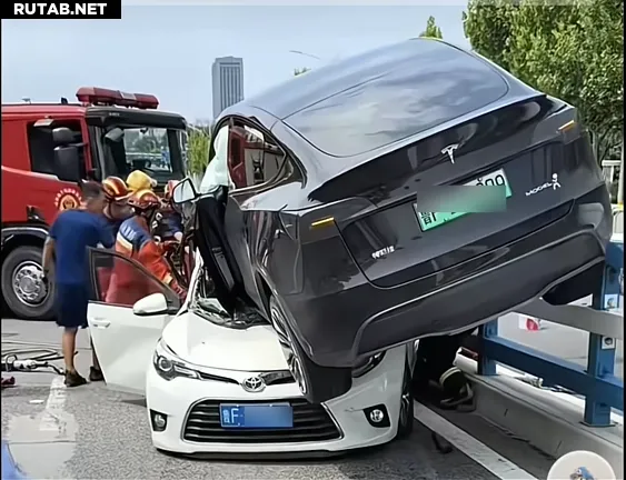 В Китае Tesla взлетела в воздух и приземлилась на Toyota