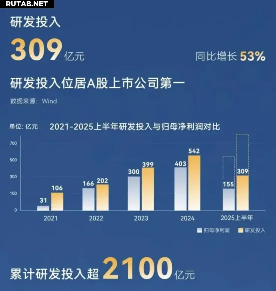 Китайский автопроизводитель BYD в первой половине 2025 года инвестировал в исследования и разработки рекордные 30,9 млрд юаней (~371 млрд рублей), что на 53% больше, чем за аналогичный период прошлого года. Примечательно, что эта сумма более чем вдвое превысила чистую прибыль компании, которая составила 15,5 млрд юаней (~186 млрд рублей).