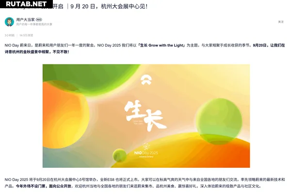 NIO заявила, что День NIO — это ежегодная встреча компании с пользователями, а тема этого года — «Расти вместе со светом».