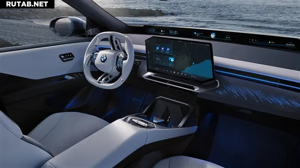 Новый 3D-проекционный дисплей расположен над панорамным дисплеем и проецирует информацию навигации и автономного вождения в оптимальное поле зрения водителя. Сенсорный экран центральной консоли BMW имеет дизайн «свободной формы» с наклоном обеих сторон экрана к водителю на 17,5°.