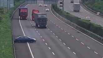 Инцидент произошел 8 сентября 2025 года в 13:07 по местному времени (8:07 мск) на скоростной трассе Цзигуан. Черный легковой автомобиль двигался по шоссе, когда впереди идущий грузовик начал перестраиваться в левый ряд. Вместо того чтобы сбросить скорость и уступить дорогу, легковушка продолжила движение и врезалась в промежуток между грузовиком и отбойником. К счастью, в аварии никто не пострадал.