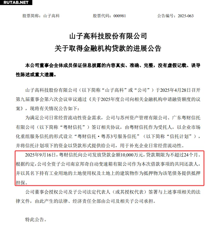 Что касается финансовой поддержки, компания Shanzi Hi-Tech объявила о предоставлении ей кредита в размере 100 миллионов юаней (~1.2 млрд рублей) сроком на 24 месяца фондом Guangdong Finance Trust. Её дочерняя компания Nanjing Bangqi выступит в качестве соплательщика и предоставит гарантию по ипотеке на принадлежащие ей промышленные земли и надземные здания.