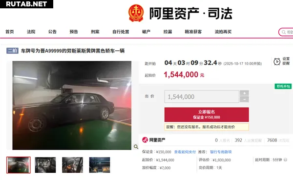 Согласно странице судебных аукционов Alibaba, автомобиль был выставлен на торги Промежуточным народным судом города Янцюань провинции Шаньси. Аукцион начнется 17 октября в 10:00 по местному времени. Регистрационный взнос составляет 150 000 юаней, начальная цена — 1,544 млн юаней, шаг ставки — 7000 юаней, а оценочная стоимость автомобиля — 1,93 млн юаней.