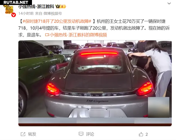 Жительница Ханчжоу госпожа Ван столкнулась с серьезной проблемой после покупки нового автомобиля Porsche 718 стоимостью около 700 000 юаней.