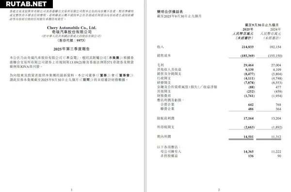 Китайская автомобильная компания Chery Automobile опубликовала финансовый отчет за третий квартал 2025 года, показав впечатляющие результаты.
