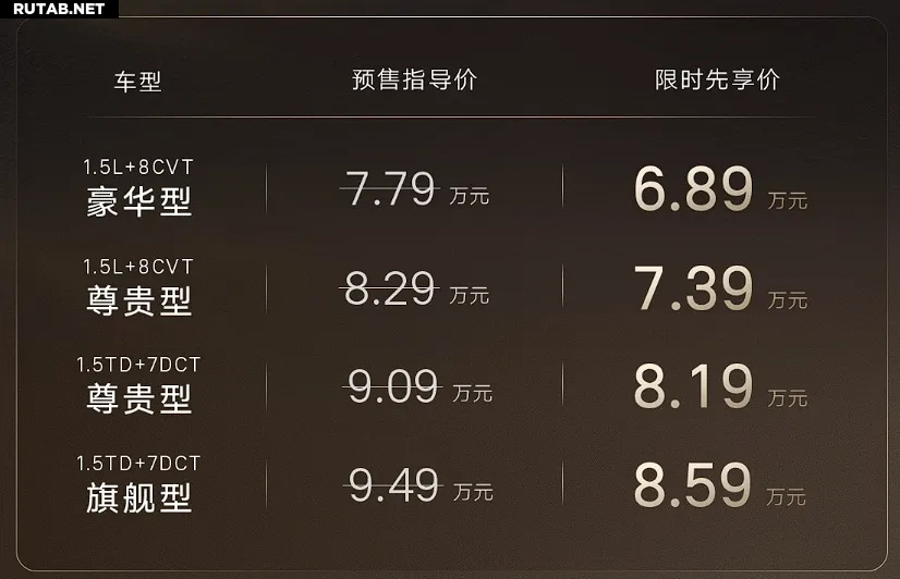 Покупателям предлагается два варианта силовых установок: атмосферный двигатель 1.5L мощностью 120 л.с. в паре с вариатором, и турбированный 1.5T мощностью 133 кВт (181 л.с.) с крутящим моментом 290 Н·м. Версия с турбодвигателем и 7-ступенчатой роботизированной коробкой передач с двойным сцеплением разгоняется до 100 км/ч за 7,9 секунды.