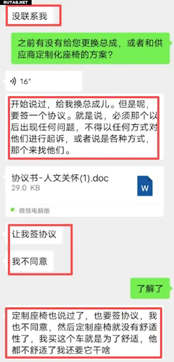 Технический персонал производителя предложил альтернативное решение — установить дополнительные подушки на сиденья. Однако Ван настаивает, что это не решает проблему качества автомобиля, и требует полноценного устранения дефекта.
