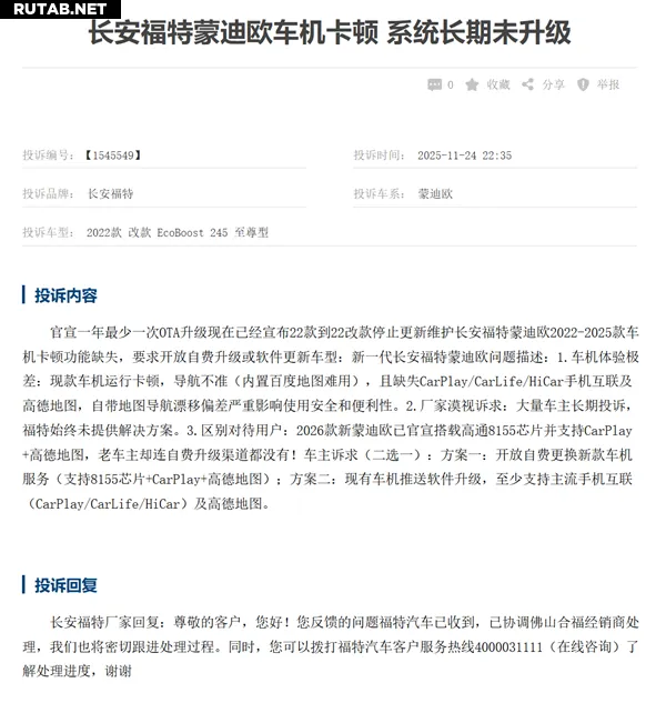 Ситуацию обострил анонс обновленной модели Mondeo 2026 года, которая получит более производительный чип Qualcomm 8155, поддержку CarPlay и карт Amap (аналог GaoDe). Владельцы предыдущих поколений не имеют возможности даже платно обновить свою систему.