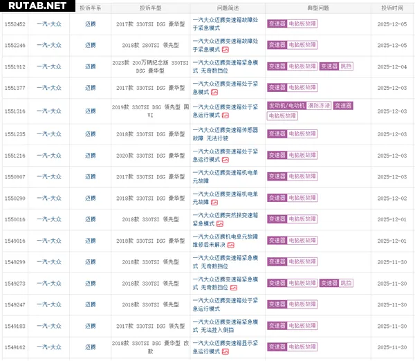 На платформе для жалоб потребителей на автомобили Chezhiwang появились коллективные жалобы владельцев Volkswagen Magotan от FAW-Volkswagen. Основные причины — «трещины на шинах» и переход коробки передач в аварийный режим с потерей нечётных передач. Проблема затрагивает в основном модели 2017-2019 годов выпуска.