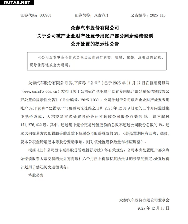Китайский автопроизводитель Zotye Auto объявил о планах продать часть акций для решения долговых проблем. Согласно официальному заявлению компании, планируется вывести на рынок до 3% от общего числа акций, что составляет не более 151 миллиона штук.