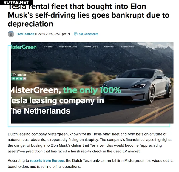 В последние два года Tesla активно снижала цены на новые автомобили, что привело к резкому падению стоимости подержанных электромобилей. Mistergreen пришлось списать миллионы долларов из-за обесценивания своего автопарка. Одновременно с этим обещание Илона Маска о превращении частных Tesla в беспилотные такси до сих пор не реализовано.