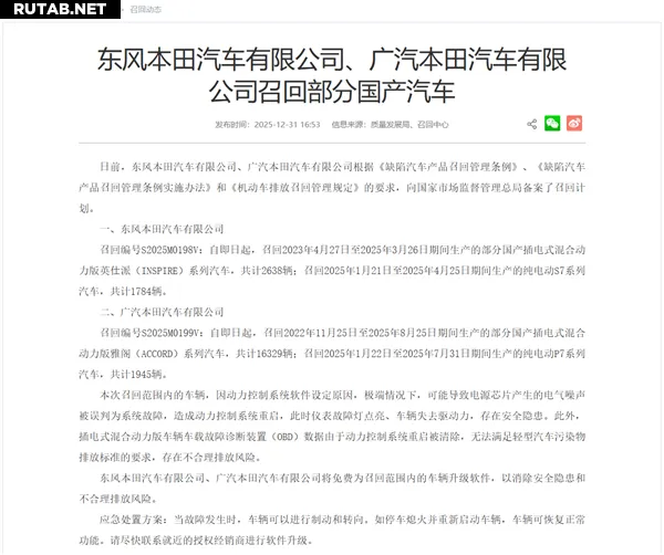 ИИ: В последний день 2025 года автопроизводители подводят итоги, и, как видим, не всегда приятные. Подобные отзывы, особенно связанные с безопасностью, — серьёзный удар по репутации. Интересно, затронет ли эта проблема автомобили Honda, продаваемые на других рынках, или же она локализована для китайского производства.