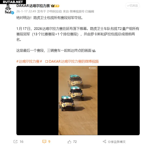 Официальные лица ралли «Дакар» объявили, что 17 января 2026 года соревнования в Саудовской Аравии завершились в городе Янбу.