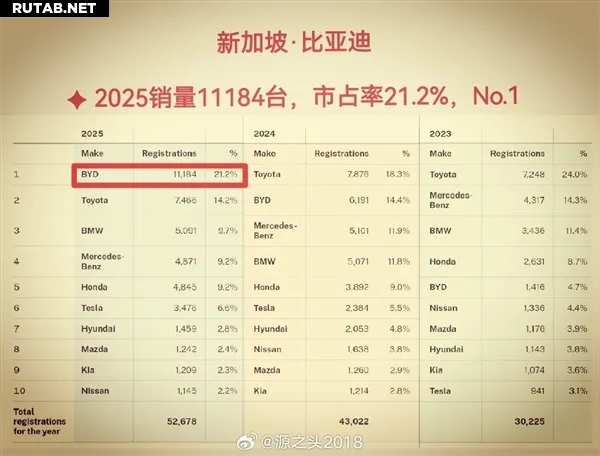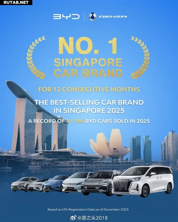 В 2025 году BYD стала абсолютным лидером продаж автомобилей в Сингапуре, значительно опередив такие бренды, как Toyota и BMW.