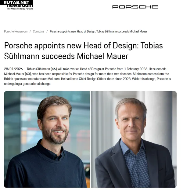 Porsche официально объявила о кадровых перестановках в руководстве дизайн-отдела. Бывший главный дизайнер McLaren Тобиас Зюльман (Tobias Sühlmann) с 1 февраля 2026 года займёт пост главы отдела дизайна бренда, сменив Михаэля Мауэра (Michael Mauer). Назначение вступает в силу немедленно.