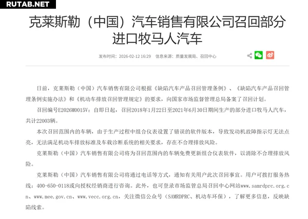 Компания Chrysler (China) Automobile Sales Co., Ltd. объявила об отзыве в Китае более 22 тысяч автомобилей Jeep Wrangler. Причиной стала ошибка в программном обеспечении комбинации приборов.
