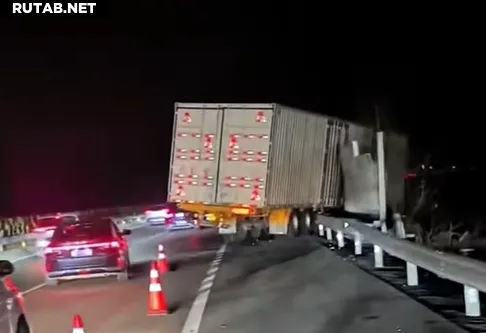 Этот манёвр привёл к столкновению с грузовиком в левом ряду. Легковушка мгновенно потеряла управление, была отброшена на ограждение, совершила два полных оборота и остановилась. Грузовик также не смог удержаться на дороге и частично выехал на отбойник.