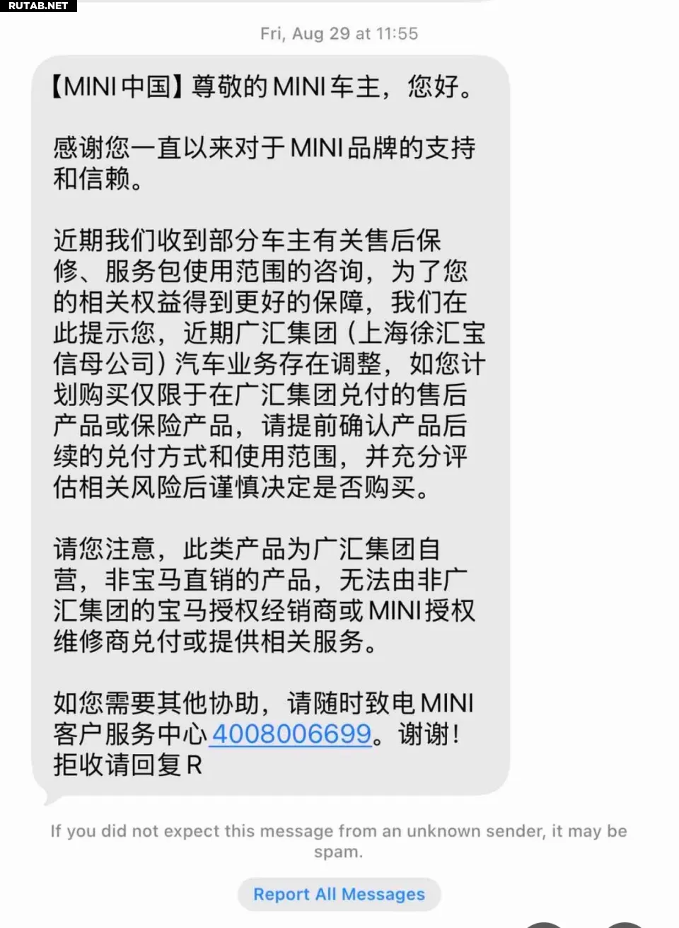 29 августа он получил от BMW предупреждение о риске, в котором сообщалось, что этот вид услуг предоставляется дилером и не может быть использован в других дилерских центрах BMW. Когда он прибыл в магазин в сентябре того же года, магазин 4S уже был пуст.
