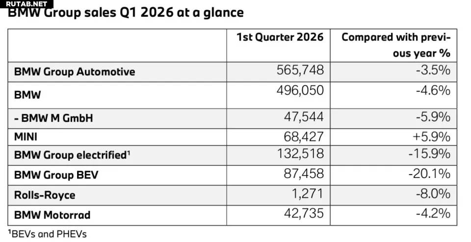 На уровне брендов ситуация также была неоднородной. Основной бренд BMW поставил 496 100 автомобилей (снижение на 4,6%), а высокопроизводительные модели серии M — 47 500 единиц (снижение на 5,9%). Rolls-Royce поставила 1271 автомобиль (снижение на 4,2%). Единственным брендом, выбившимся из общей негативной тенденции, стал MINI, который поставил 68 400 автомобилей, показав рост на 5,9% и отметив пятый квартал подряд с увеличением продаж.