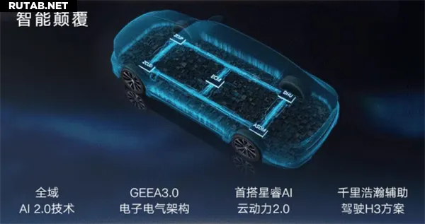 Главной особенностью стала силовая установка с интеллектуальной гибридной системой Geely, включающей 1,5-литровый двигатель и мощный гибридный электродвигатель (11-в-1) с максимальной мощностью 230 кВт. Разгон до 30 км/ч занимает 1,84 секунды, что на 18% быстрее традиционных гибридов. Трансмиссия — 3-ступенчатая коробка DHT.