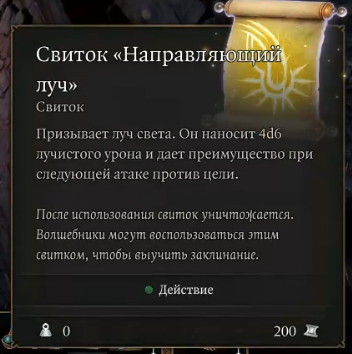 Теперь нужно решить, что делать с книгой: прочитать или уничтожить. Если вы осмотрите ее, то заметите уязвимость только от одного вида урона – «Лучистый». Хотя заклинание-фокус «Священное пламя» наносит урон такого типа, книгу им уничтожить не получится. Но подойдет заклинание «Направляющий луч». За уничтожение фолианта вы получите 50 ОО. Задание будет завершено. (Книгу также можно отдать Гейлу. Он высосет магическую энергию и уничтожит книгу. Возможен баг, при котором задание не закрывается)
