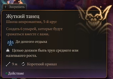 Теперь можете закончить чтение «Некромантии Тхая». Это дает вам заклинание 5-го круга под названием «Жуткий танец».