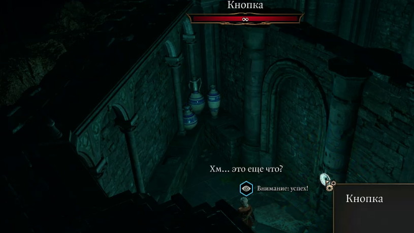 Для исследования руин нужен персонаж с развитым навыком мудрость -> внимание. Это позволит находить скрытые ловушки, кнопки и т.д.