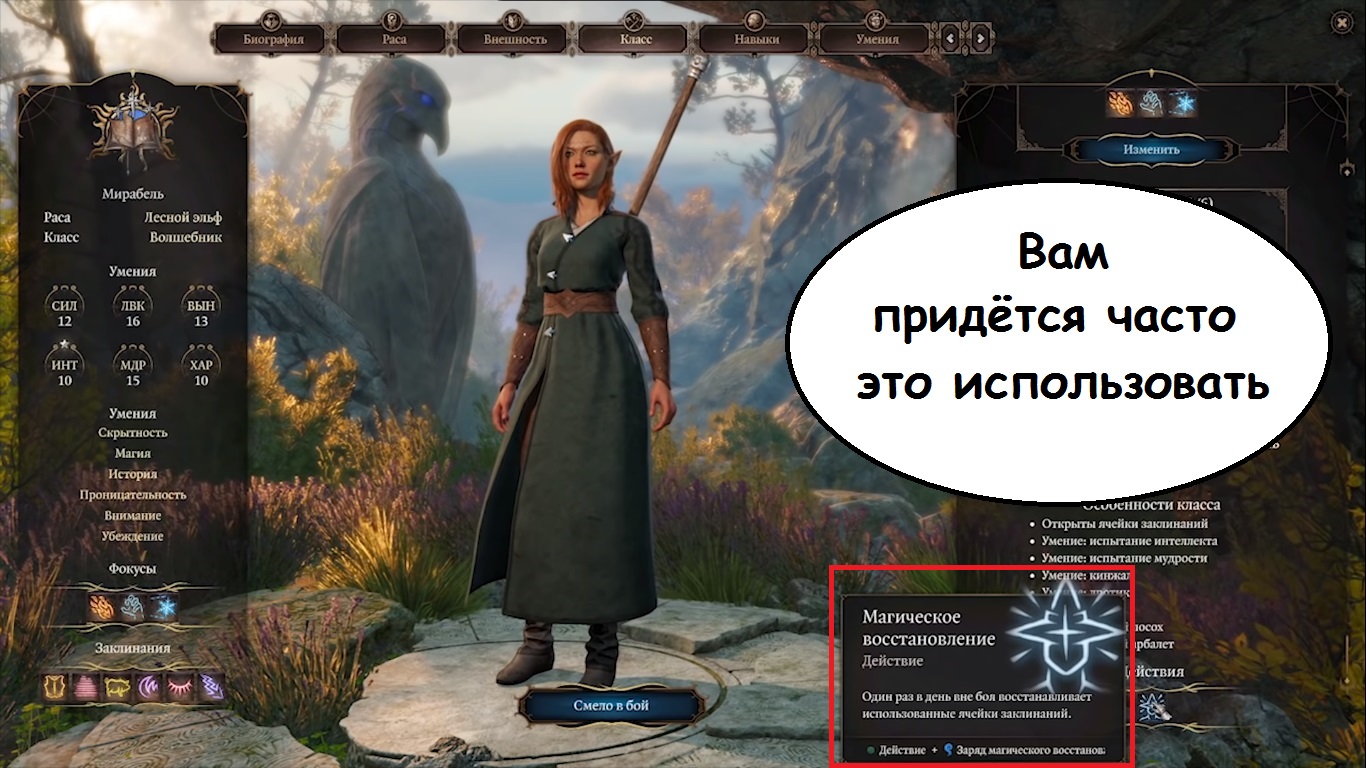 - Магическое восстановление - ваш лучший друг. Используйте его после больших сражений, где вы хотите продолжать продвигаться вперед в своем приключении. Вы сможете восстановить слоты заклинаний без необходимости завершать долгий отдых в лагере.
