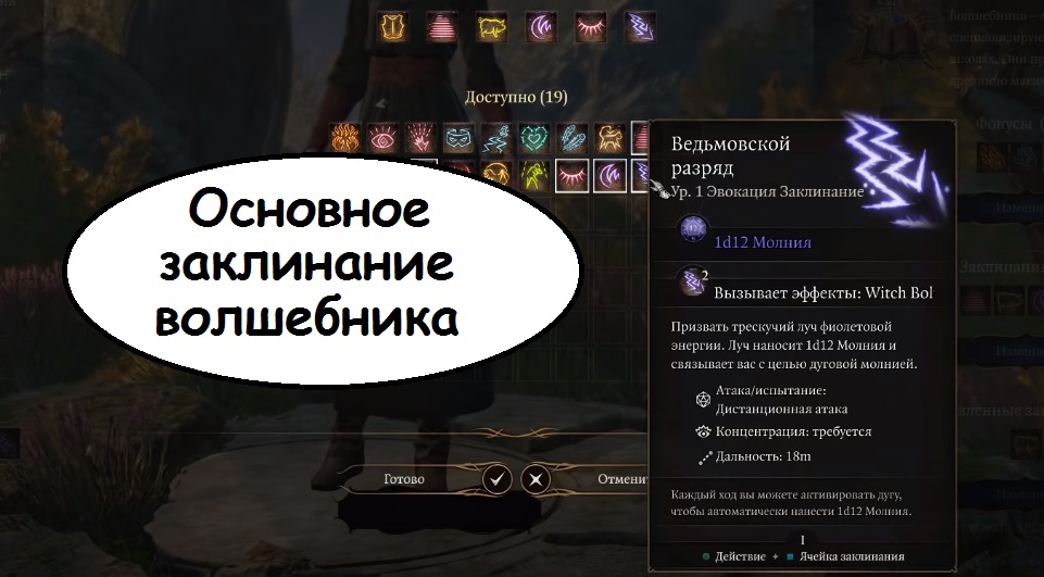 - Сосредоточьтесь! Помните, какие заклинания требуют от вас концентрации. Это должно быть указано в описании, и если пропустить этот момент, то скастовав второе заклинание с концентрацией, можно лишиться пользы от первого;