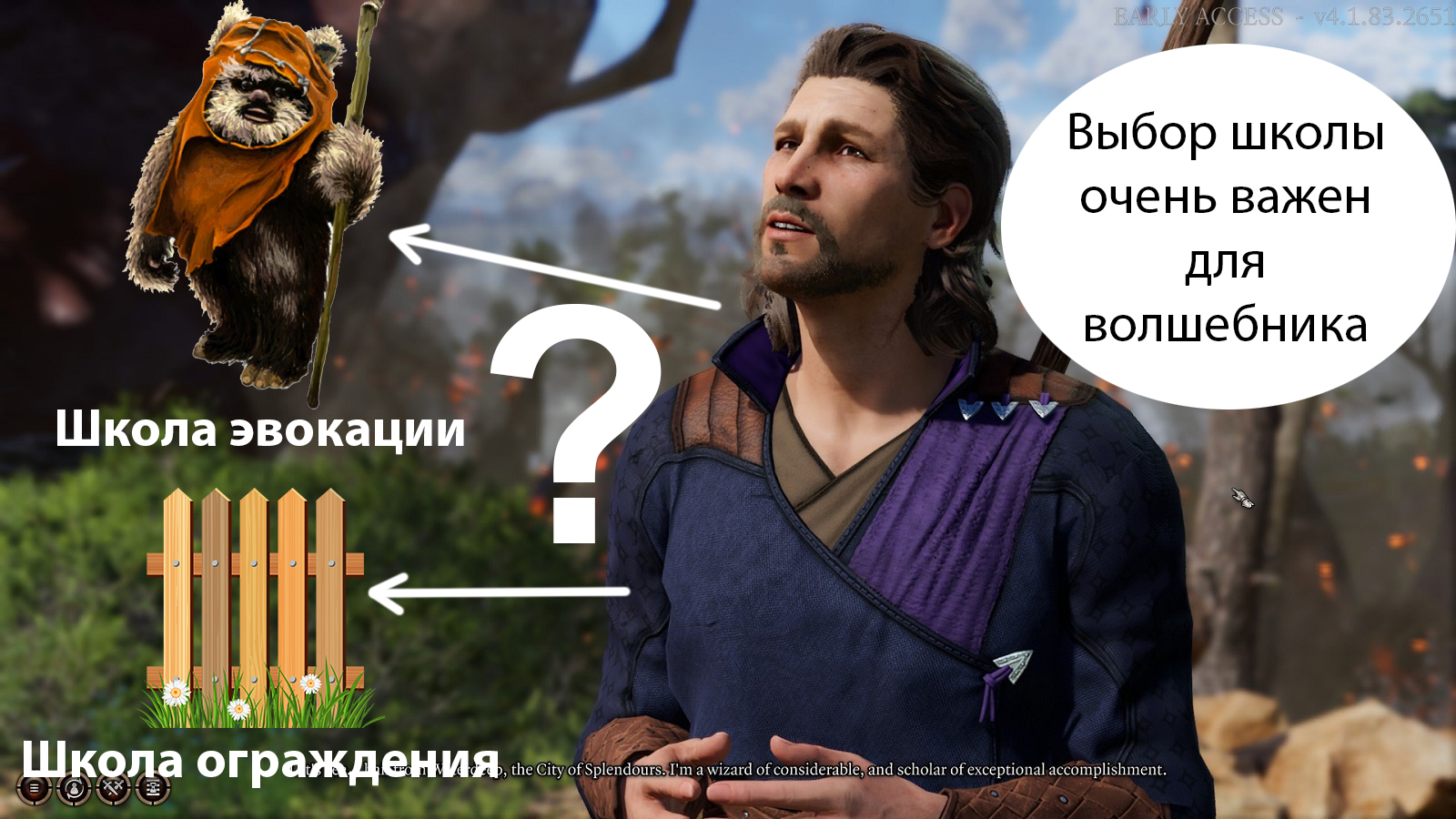 По общему признанию, выбор подкласса не будет иметь большого влияния в версии раннего доступа Baldur's Gate 3: какой бы подкласс вы ни выбрали, ваш набор заклинаний останется почти одинаковым. Скорее всего, стоит ожидать, что в будущем при выборе Школы Эвокации, персонаж будет больше сосредоточен на атакующих заклинаниях. При выборе Школы Ограждения Волшебник ориентирован на защитные заклинания.