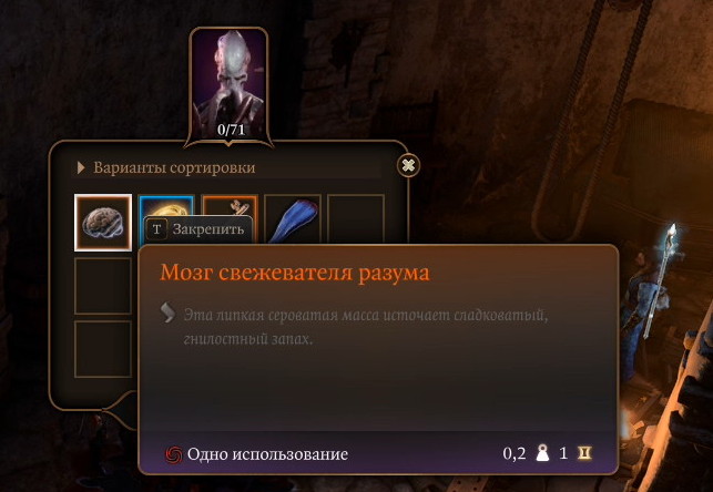 Если вы поговорите с ним, то он попросит привести гуманоида, но на самом деле подойдет любой труп (можно откопать на кладбище Брилгора или взять труп в колодце рядом). В награду вы получите то же «Кольцо правдивости», усиление способностей иллитида (+1 личинка к иллитидским способностям), а также 200 опыта и возможность получить вдохновение в зависимости от выбранного происхождения персонажа.