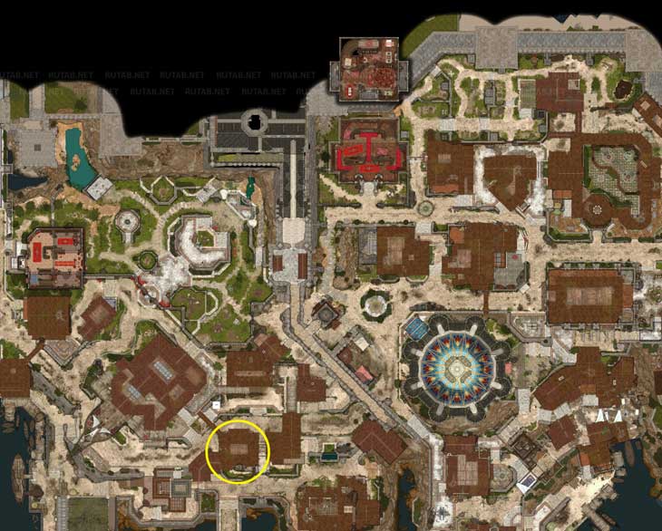 Направляйтесь к северу от путевой точки Василисковых Ворот и войдите в синюю дверь. Взломайте дверь и обыщите область, чтобы найти таз клоуна.