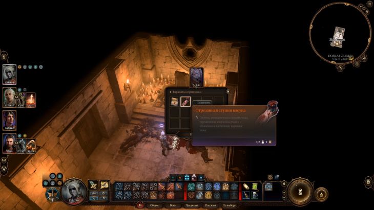 Отправляйтесь в дом Сельвы, к югу от «Карминных настоек». Взломайте входную дверь, найдите люк на первом этаже и обыщите трупы в подвале, чтобы найти отрезанную ступню клоуна.