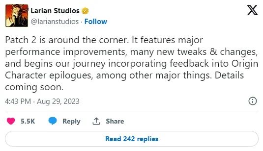 В аккаунте X/Twitter бельгийского разработчика появилась запись о том, что второй патч «не за горами». Мы не знаем, когда именно выйдет этот патч, но «скоро» узнаем о нем больше.
