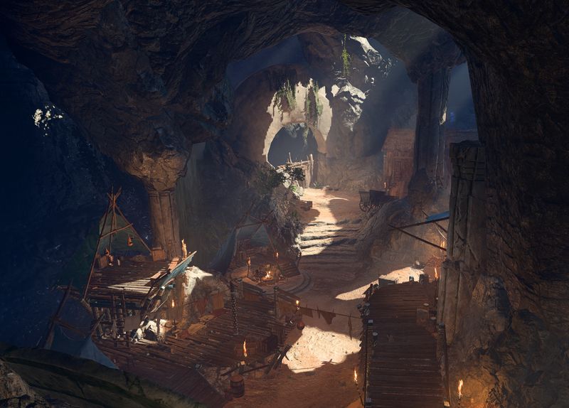 Пара тифлингов разбила небольшой лагерь на западе. Если кто-то из тифлингов умрет, он может оказаться похороненным на небольшой поляне к западу.