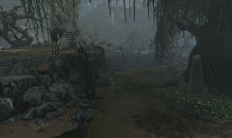 На северо-восточной стороне болот находится лагерь, залитый кровью. Даже если иллюзия все еще существует, кровавую бойню все равно можно увидеть. За камышами, со всевозможными сокровищами, едой и другими припасами, нет никаких опасностей.