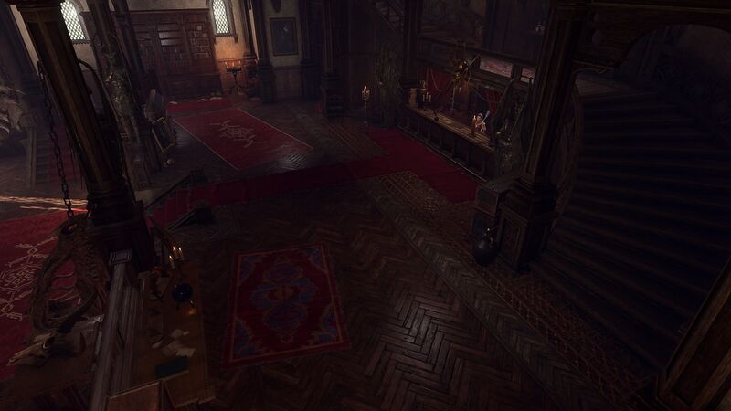 Вход защищен ловушкой с защитным знаком. Ее можно обезвредить, дав воду горгулье на стене. Если вы активируете ловушку с символом, горгулья издевается над вами. На этот этаж также можно попасть, прыгнув, перелетев или иным образом перебравшись на балкон на западной стороне здания.