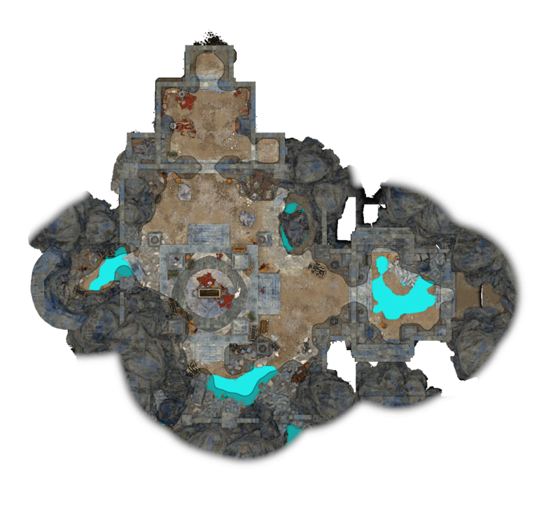 Главный зал заполнен сундуками, окружающими открытый саркофаг. Скрытая (КС 10) запертая (КС 20) дверь на северной стене ведет во вторую комнату. Открытие любого сундука или двери вызовет засаду, устроенную ордой нежити. Ваш персонаж и спутники не будут