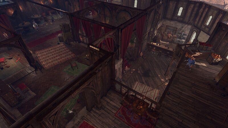 - «Смущенная русалка» в Baldur's Gate III представляет собой комбинацию двух таверн Нижнего города, описанных в настольном приключении D&D «Baldur's Gate: Descent into Avernus»: чрезвычайно шумная «Смущенная русалка», расположенная в обычном здании в райне Свалки, и «Фонарь Нижнего», расположенная на старом торговом корабле в доках, которой управляет «капитан».